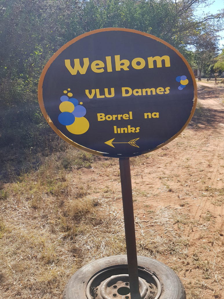 Verwelkoming op die Lessing plaas.